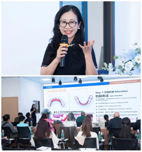 “面诊与方案沟通最重要的一点在于‘认知的同频’,只有让患者清晰理解诊疗对生活的影响,才能建立深度信任。”刘姗院长介绍,新桥口腔特别引入iTero数字化平台,通过3D模拟影像直观展示正畸全流程,使患者得以“预见”正畸效果,让医患站在“同视角”沟通正畸方案,极大提升了沟通效率与信任基础。同时,刘姗院长还分享了隐适美高效正畸案例,通过对比患者正畸前后的真实变化,直观展现了数字化技术在隐形正畸中的优势,引发在场专家的热烈讨论。